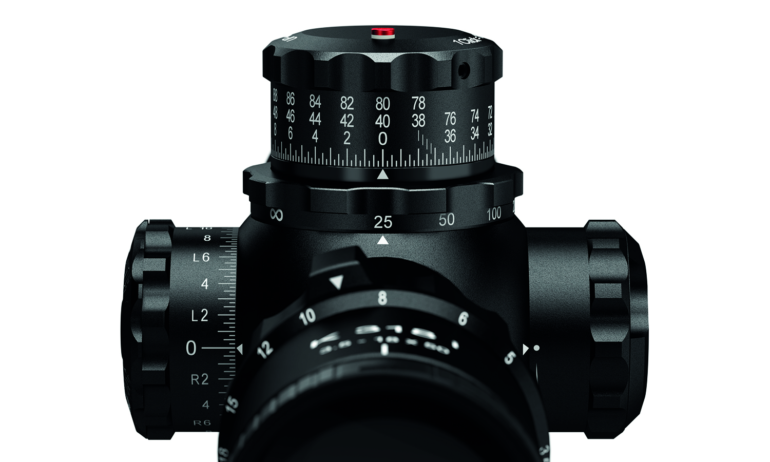 – Колесо отстройки параллакса, встроенное в барабан ввода поправок по вертикали, диапазон: 25м-∞